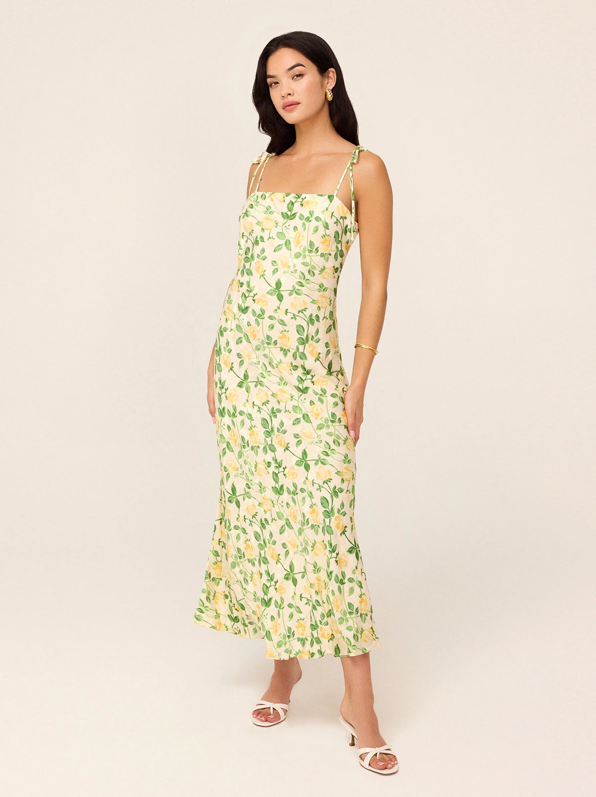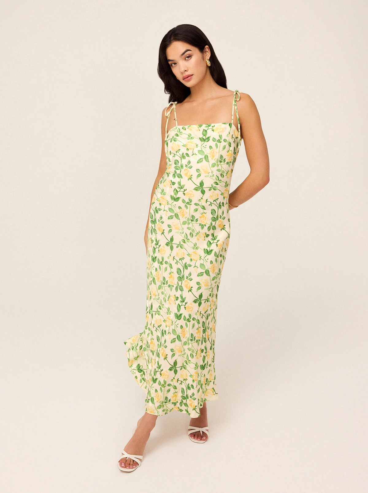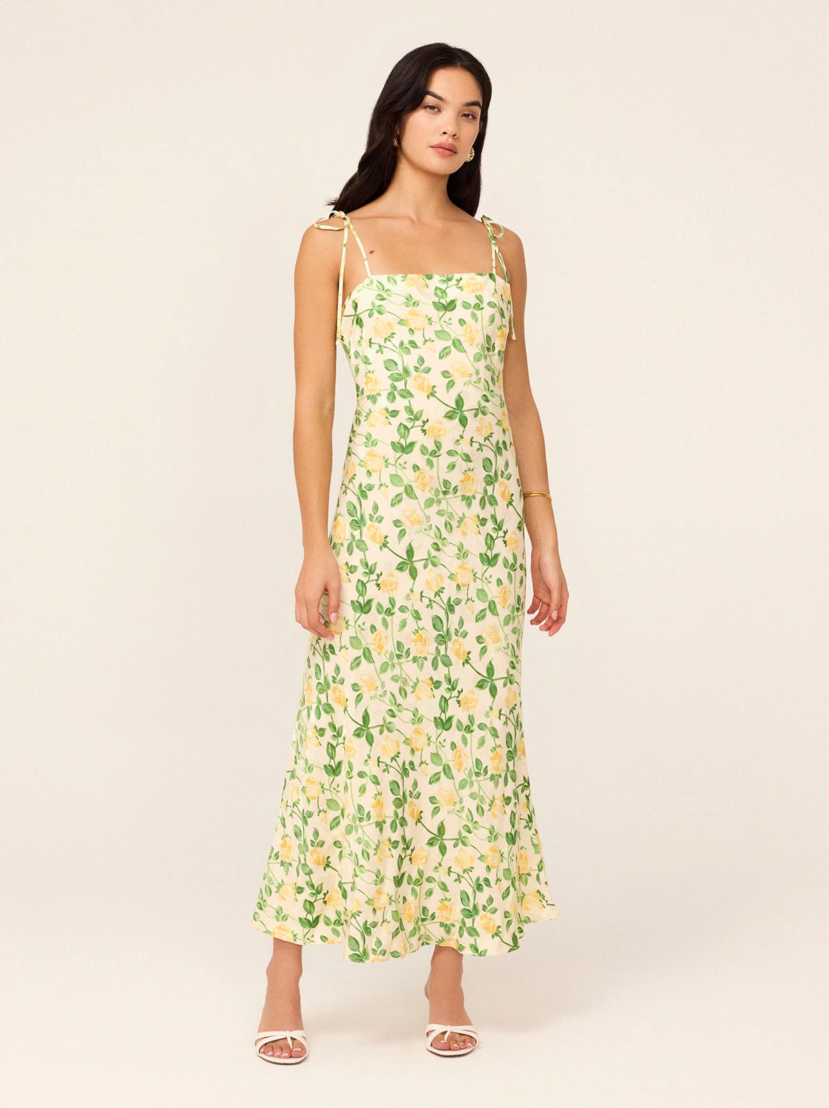 Effortless elegance, wrapped up in a dress. The Giulia Maxi Dress is designed in a bias-cut silhouette, draping beautifully to create a flattering, fluid fit. The straight neckline and delicate tie shoulder straps add a playful, feminine touch, while the printed viscose jacquard brings just the right amount of texture and charm.