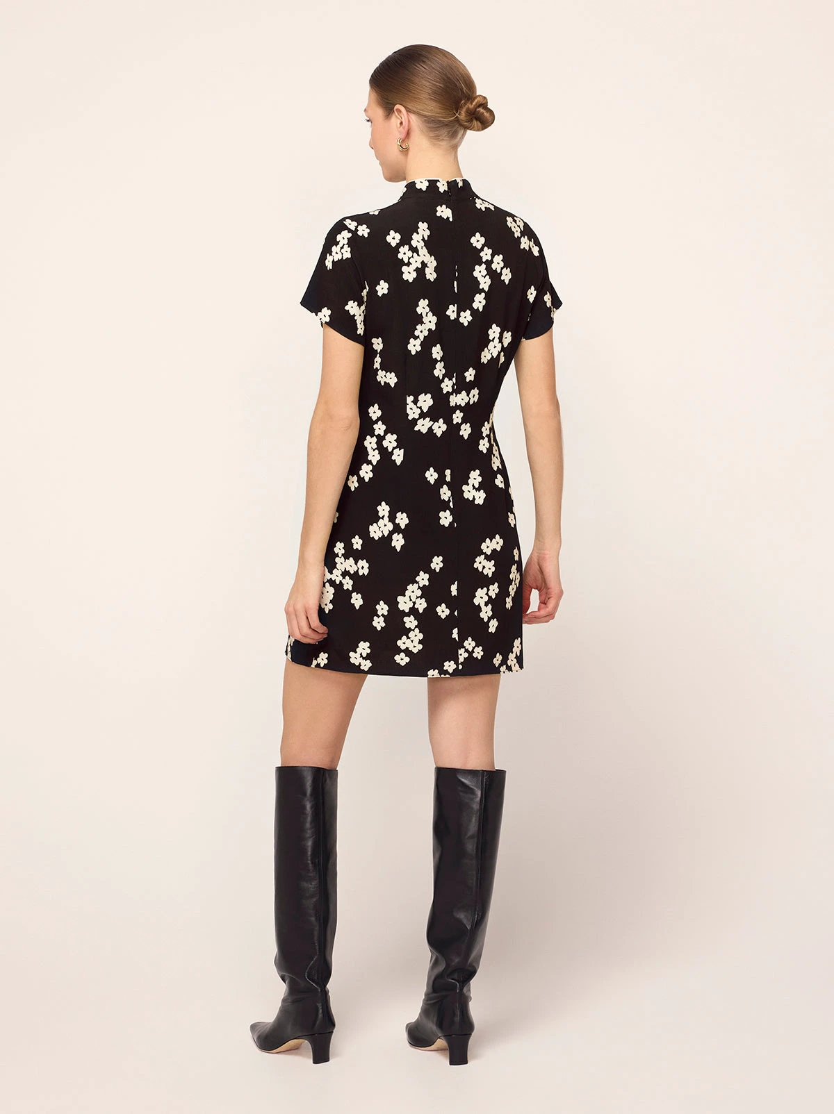 Short and sweet, Gretchen is the mini dress you’ll want to wear again and again. Crafted from an oh-so-wearable Black Blurred Floral print, Gretchen strikes the perfect balance between elegant and edgy. The Cheongsam-inspired collar adds a touch of refinement, while the double tie closure and mini length keep it playful. Whether you’re pairing her with knee-high boots for an autumnal day out or with sling-back heels for an evening occasion, Gretchen is as versatile as she is chic.