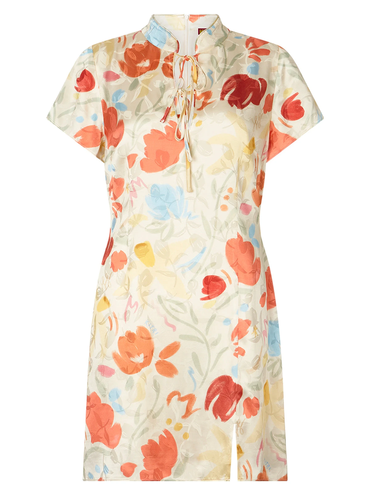 Short and sweet. Gretchen is a mini dress in sumptuous Pastel Floral print with Cheongsam-inspired collar and double tie closure. A twist on our ever-popular Harlow dress, Gretchen’s exquisite jacquard fabrication adds a subtle shimmer and texture to the dress that’s sure to make an impression.