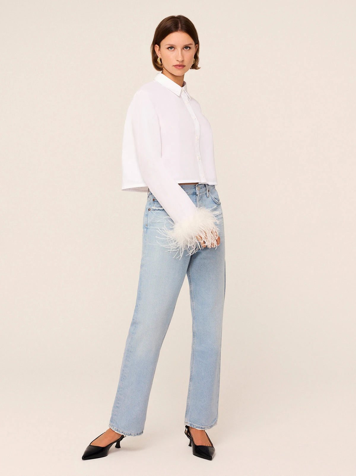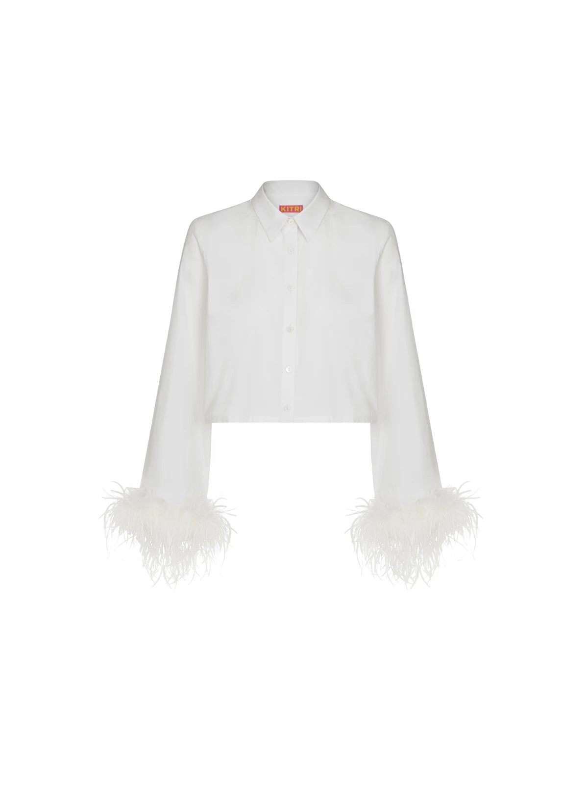 Classic with a KITRI twist. Say hello to Kirsten, the classic white shirt with a statement KITRI twist. Crafted from crisp cotton poplin, her boxy, cropped silhouette is effortlessly modern, while the wide sleeves finished with soft feathered cuffs bring a touch of playful drama. Perfectly versatile, Kirsten elevates any look – style her with tailored trousers for a polished office outfit or layer her under knitwear for added texture and flair. Designed to stand out, she transitions seamlessly from day to evening, adding elegance with a contemporary edge. A true team KITRI favourite, Kirsten is a limited-edition piece you won’t want to miss.
