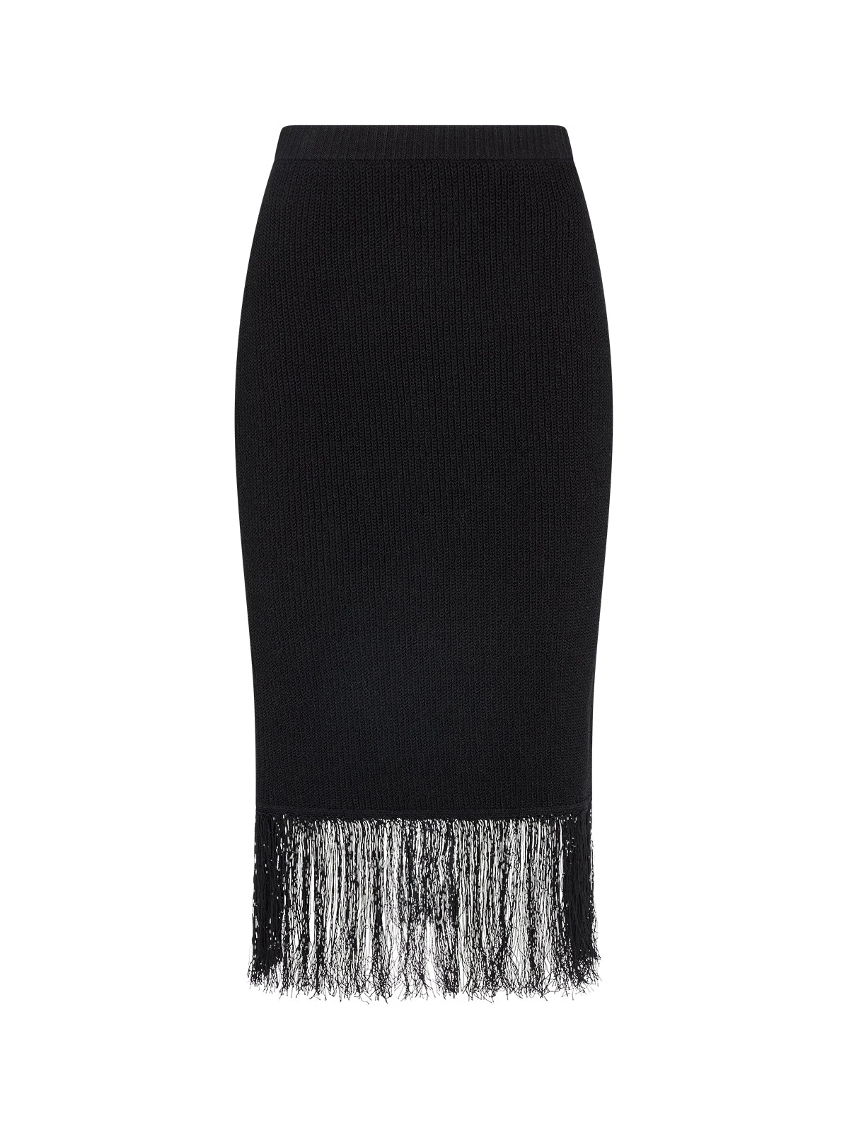 A statement skirt with everyday ease. The Marielle Skirt is crafted from a lightweight, ribbed knit that hugs the body without clinging. Designed with a flattering fitted silhouette and finished with dramatic fringing at the hem, it’s equal parts bold and wearable. The elasticated waistband keeps things comfortable, while the opaque knit means no layering required.