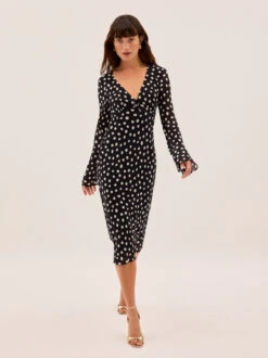 Rita is the red dress – unapologetically bold, with a structured silhouette that means business. The gathered bodice flatters without fuss, while wide straps frame the décolletage just so. Made from crisp cotton and cut to a sleek column shape, she’s fitted through the waist and hips with subtle gathering for added shape. Wear her with strappy heels, gold hoops, and a touch of mischief.